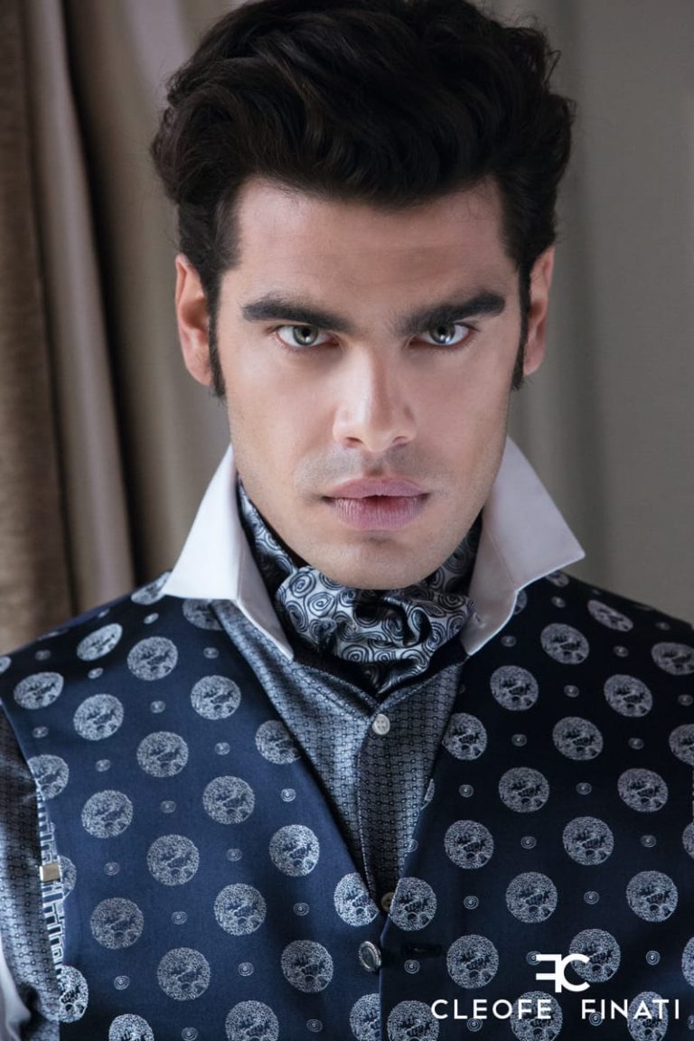 Una perfetta commistione tra arte, moda e cultura, elevata dal valore dell’unicità di tessuti esclusivi, si manifesta in questo abito da sposo