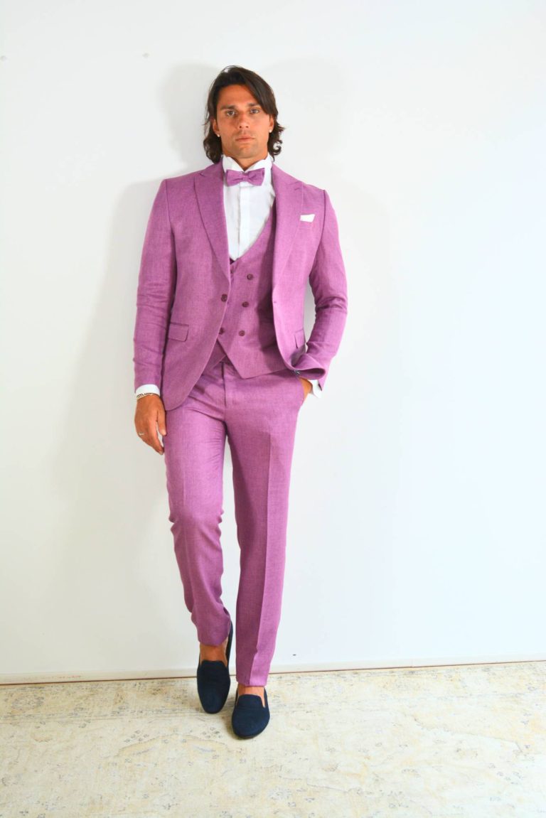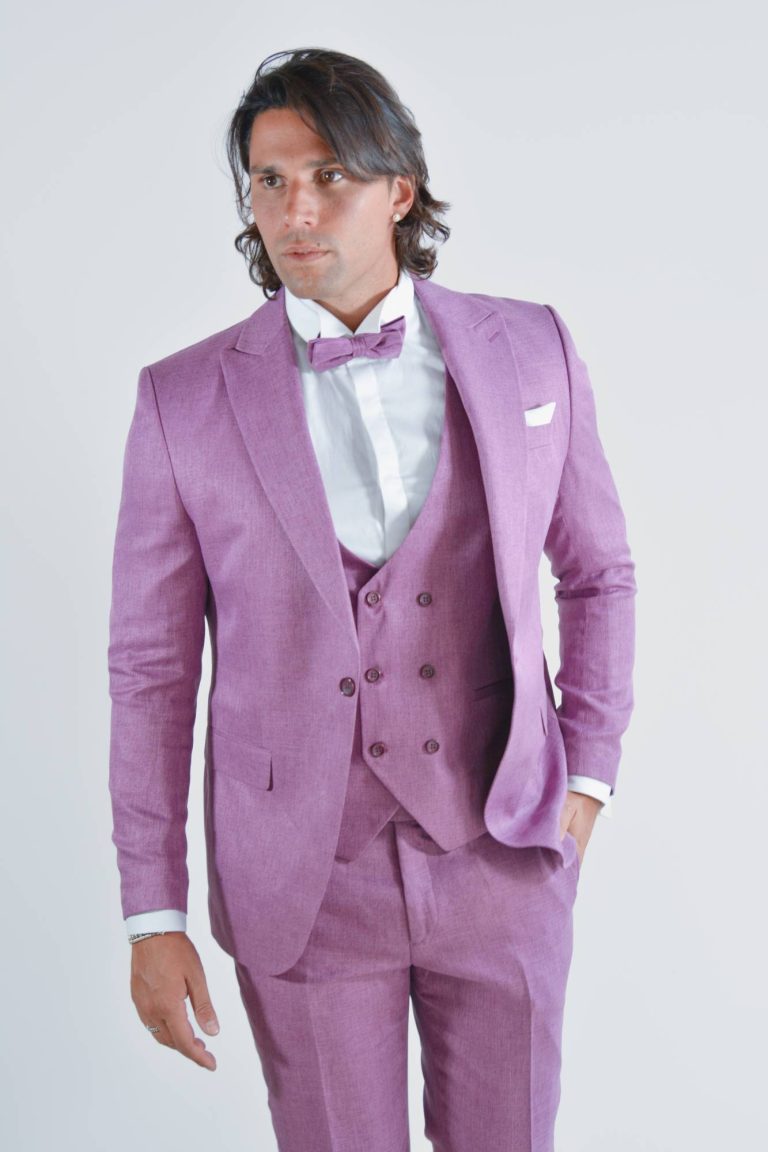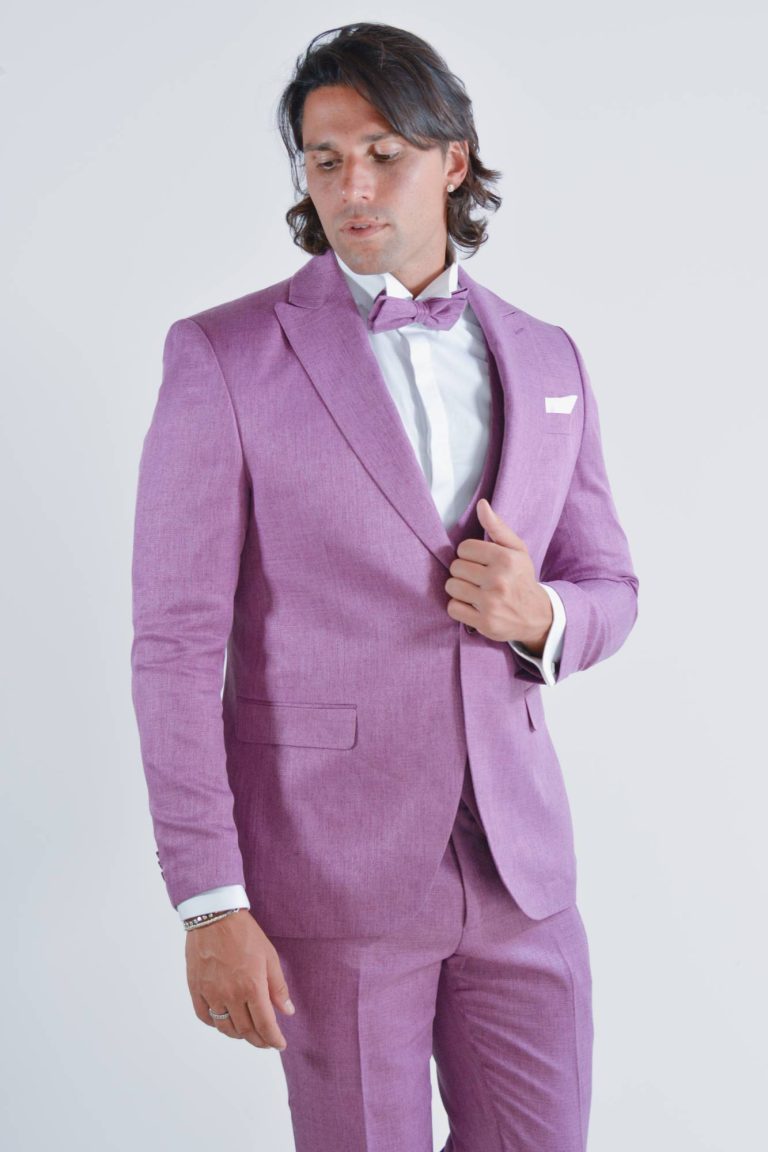 Abito da sposo di tendenza, realizzato in cotone effetto lino in color malva brillante