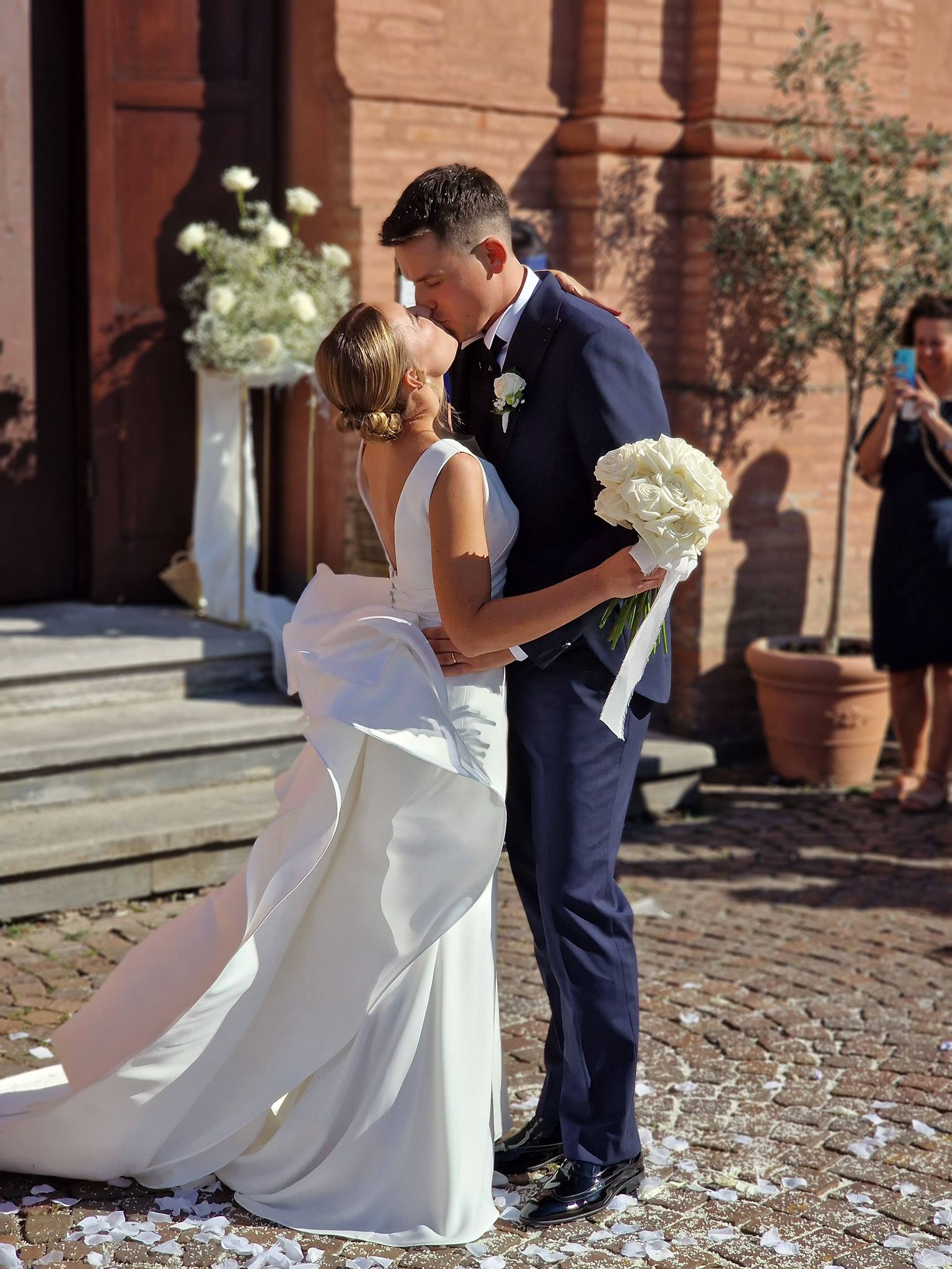 Una coppia dallo stile impeccabile. Hanno scelto abiti eleganti e perfettamente coordinati, espressione autentica della loro personalità.